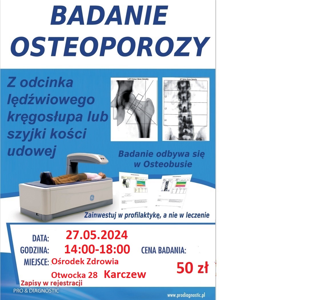 SPZZLO w Karczewie zaprasza na BADANIE DENSYTOMETRYCZNE w kierunku OSTEOPOROZY,